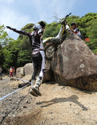 難攻不落の第8セクションの大岩。斎藤晶夫選手の華麗な舞(?)