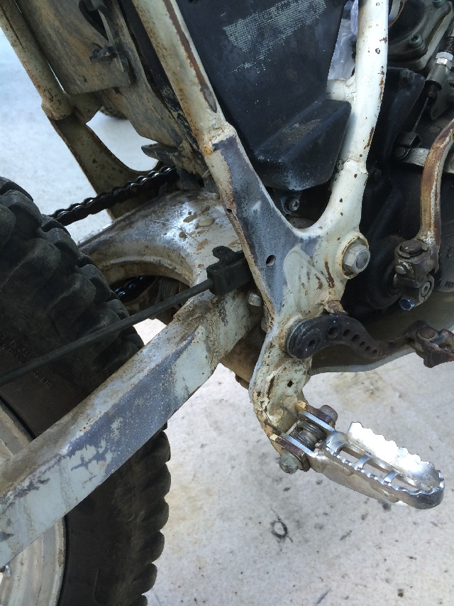 先日、リアブレーキのペダル側とハブ側を繋ぐワイヤーをTLR200のロッドに変えました。多少はしっかり効く感じです。パーツはヤフオクで90円くらい、送料が1000円(^_^;)