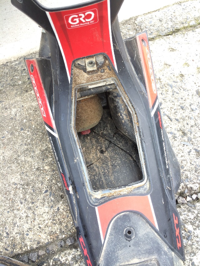 エアクリーナーボックスも外して水洗い、庭のデッキに干したら、いきなり左足首に激痛が!!!!