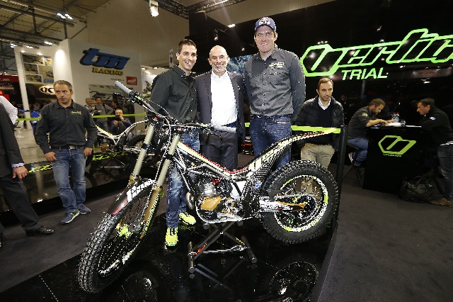VERTIGOニューモデル in EICMA!! P 2015年11月18日 , by straighton-DM K 未分類 現在開催されているEICMAのベルティゴブースの画像を入手。なんとニューモデルも展示されています。 現時点では画像情報のみですが、ご覧下さい。 VANDAL-LRというニューモデル。詳細は未確認。おや、後ろにいるのは…!! トライアル用自転車もあったり。 きれいなおねいさん、もとい、こんなMOTOもあったり。 契約ほやほやのジェロニ・ファハルド選手がいたり(左)。真ん中はオーナーのジャネーさん、右は開発アドバイザー、ドギー・ランプキンさん。