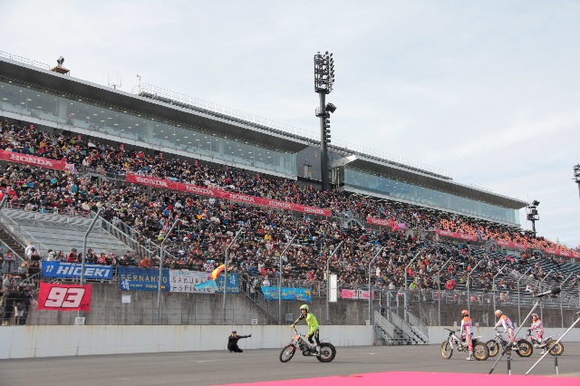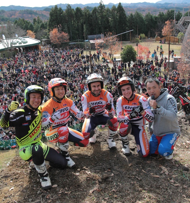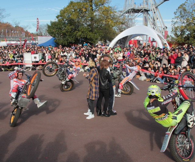 Hondaのファン感謝デーで、F1のフェルナンド・アロンソ、インディカーの佐藤琢磨からGPライダー、マルク・マルケス、ダニ・ペドロサ、そしてトライアルも小川友幸、藤波貴久、ハイメ・ブスト、そしてトニー・ボウと、ホンダのレーサー、ライダーが勢揃いです。トライアルイベントの盛り上げ役は、小林直樹さん。