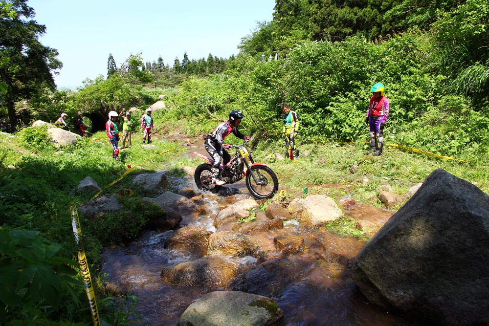 4月の開幕戦、中国大会から1ヶ月と少し、第2戦は薫風かおる新潟県阿賀野市の大日ヶ原特設会場で開催されました。ここはかつて全日本トライアル選手権も開催されたことがある、広大な会場です。現在では使える場所も制限されていますが、それでも充分な広さです。また、ここは近隣にひなびた温泉街もあり、外湯でのんびり汗を流すこともできます(なんと200円で入れるところもあります!)。