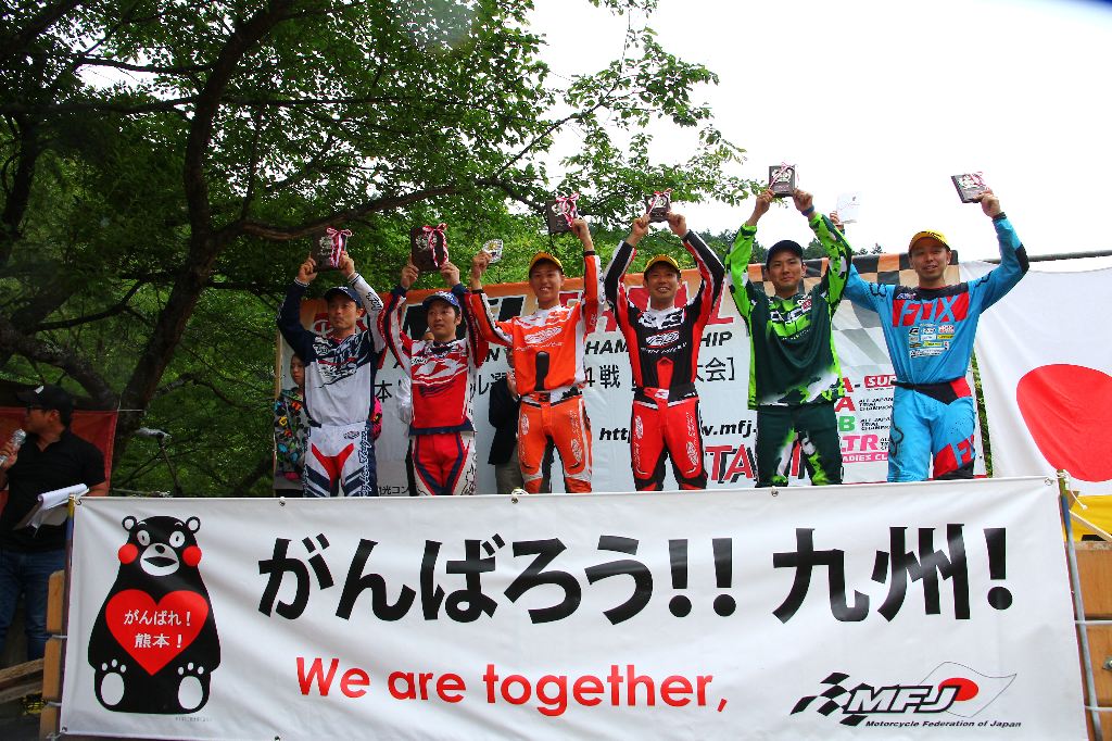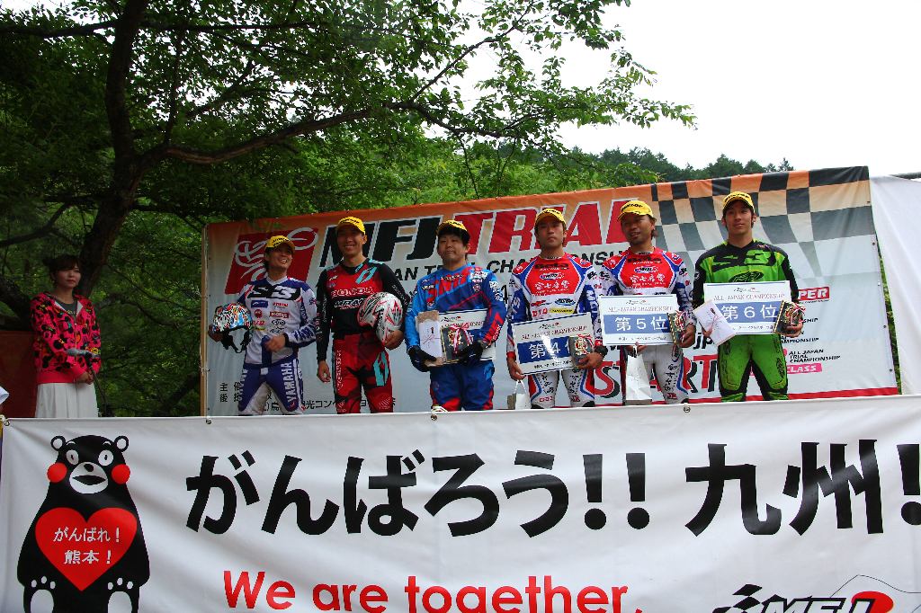 さて、注目の国際A級スーパークラスの勝負は、第2戦近畿大会から約2ヶ月開いた間に、今年新しくなったマシンの調整がかなり進んだ黒山健一選手が今シーズン初優勝。スペシャルセクションを二つを残して、2位の小川友幸選手に10点の差を付ける完全勝利でした。