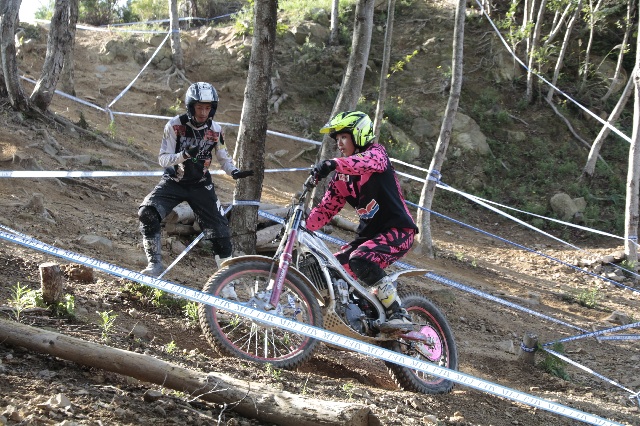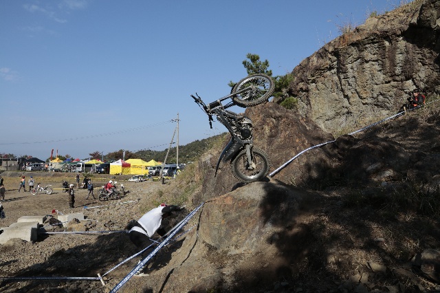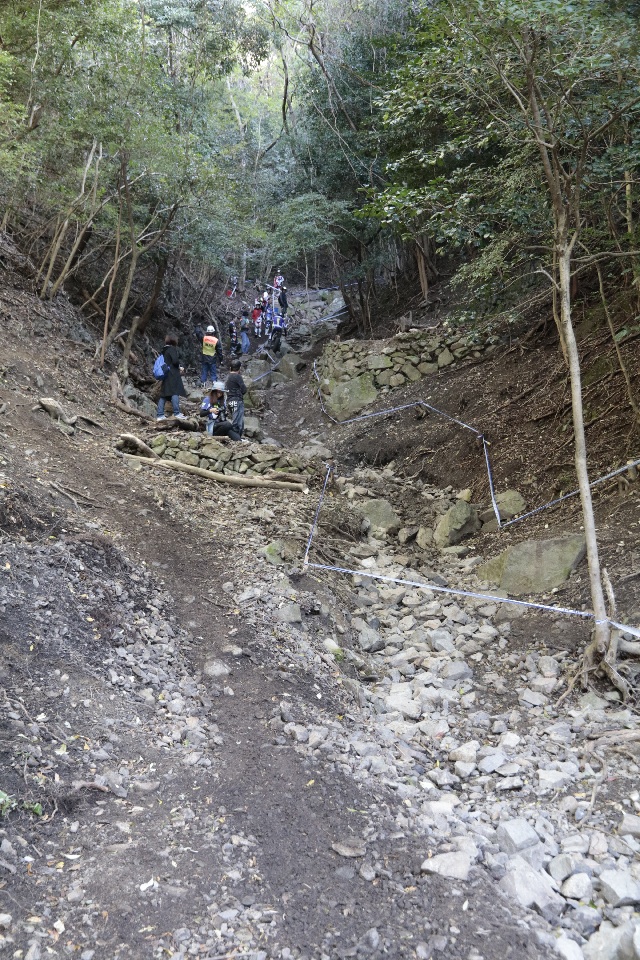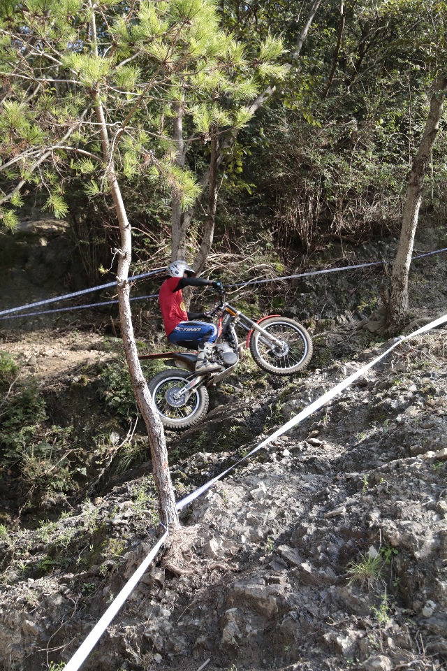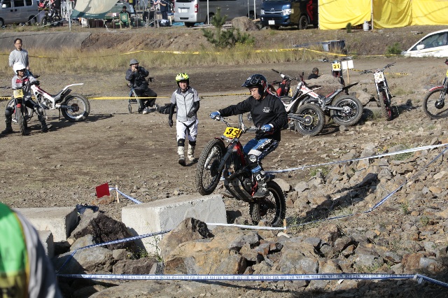 セクションは実に良く錬られていて、基礎技の習熟度がきっちりと試されます。というのは、トップライダーのように「この技」が出来ないと無理、ということではなく、曲がる、越える、止まるの超基本トライアルテクニックをどれだけ正確にできるか?最適の速度、的確なライン取りとその瞬間瞬間での加重加減が出来る最適なフォームが試されます。さらには、地方戦とはひと味違う雰囲気の中で、呑まれずに力を出せるか?という精神力も。