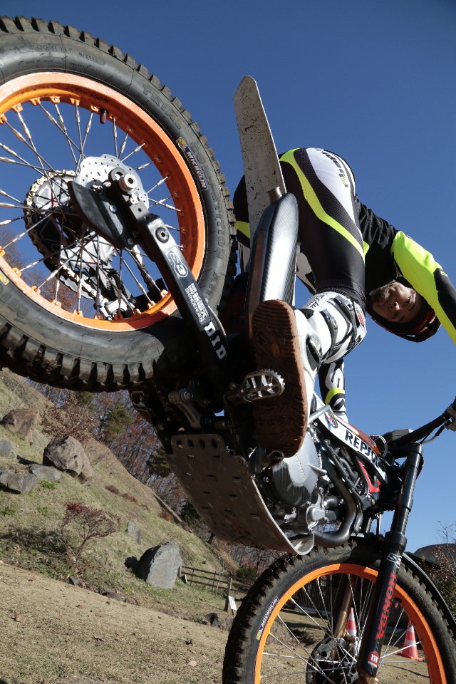 さて、ライダー本人の好みやコメント、技術、開発のお話からトライアルマジシャン小谷徹さんの分析と、ストレートオン-泥の感想もほんの少し含めて、ストレートオン新年号で詳細を明らかにしたいと思います。がんばりまっす。