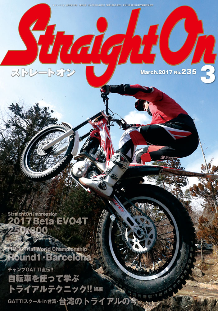 X-TRIAL開幕戦、Beta EVO4Tの魅力を伝える試乗レポートに加えて、台湾のトライアルのお話(IAS小川友幸選手が出張スクールに言った様子など)、さらに3月号で大好評を博しています「オートバイトライアルのための、自転車でのトレーニング方法」企画の後編です。ホッピングやダニエルの入口まで一気にお教えします。