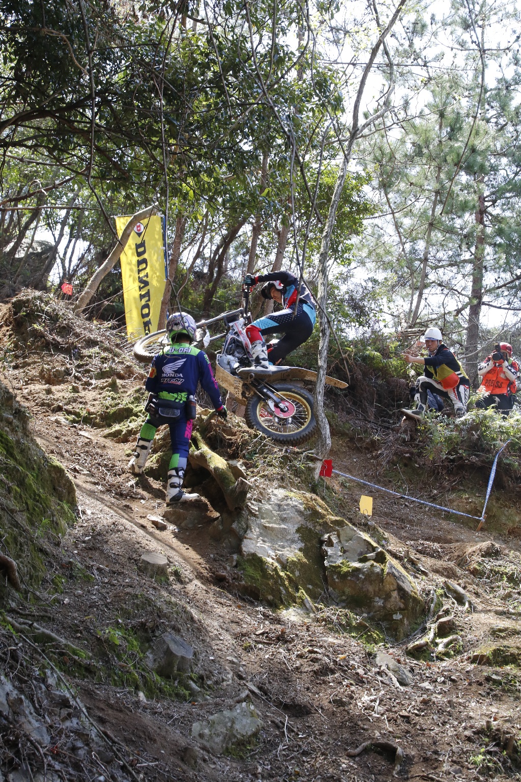 湯浅トライアルパークでは初開催でした。選手も観客も一ヶ所に駐車できる広大な平地、沢、急斜面や崖、さらには小石交じりのザクザクの路面と全日本の会場としては素晴らしいロケーションです。
