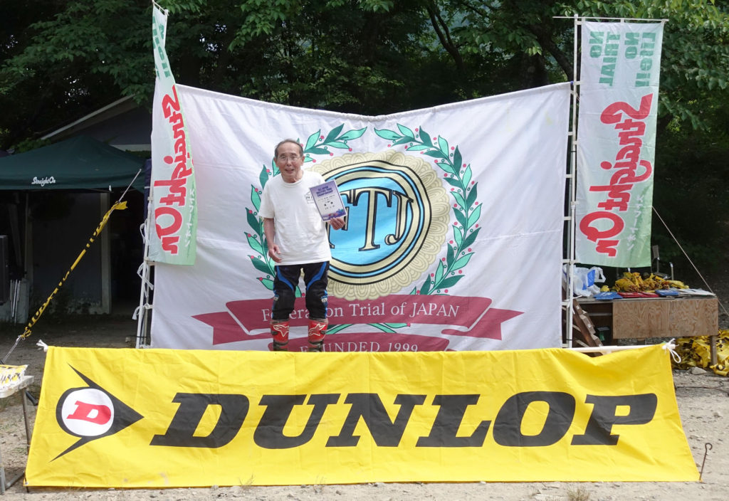 マスターズトライアルのセクションは、75歳代クラス、ビギナークラス(セクションテープ内自由ライン)はかなり難しくないです。ノーマルタイヤのオフロード車、なんならPW50のキッズバイクでも入口から出口まで走れます。ホントです。なので、トライアルのルールの主なところ、減点の仕組みを知っていればすぐに出場出来ます。しかし、ルールは適正運用、採点も適正判断です。それは、スポーツだからです。生涯を通してスポーツとしてのトライアルを楽しむ場として、「マスターズ」は開催されています。始めて間もない年少者も50の手習い、60の手習い的なオジサンも、スポーツトライアルを満喫できます。そして、今大会実績で言うと、最高齢は79歳の浜見正さん。実際、危なっかしい場面はありますが、スタッフの忖度(?)もあり、無事、完走されましたよ。