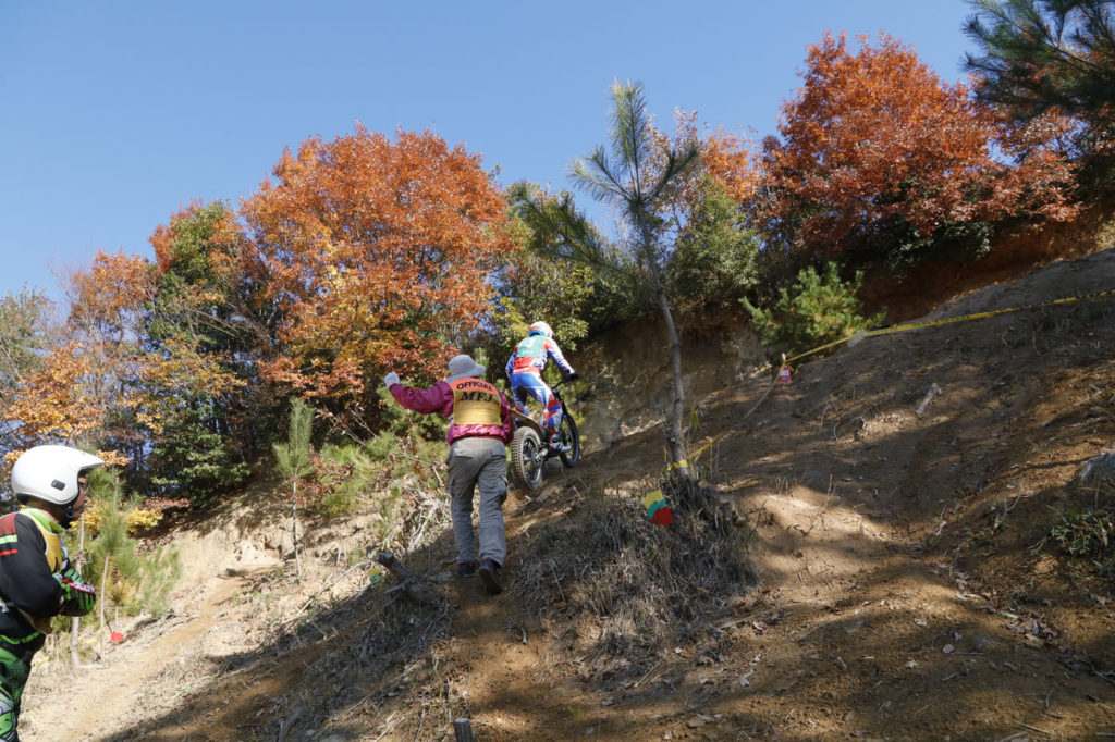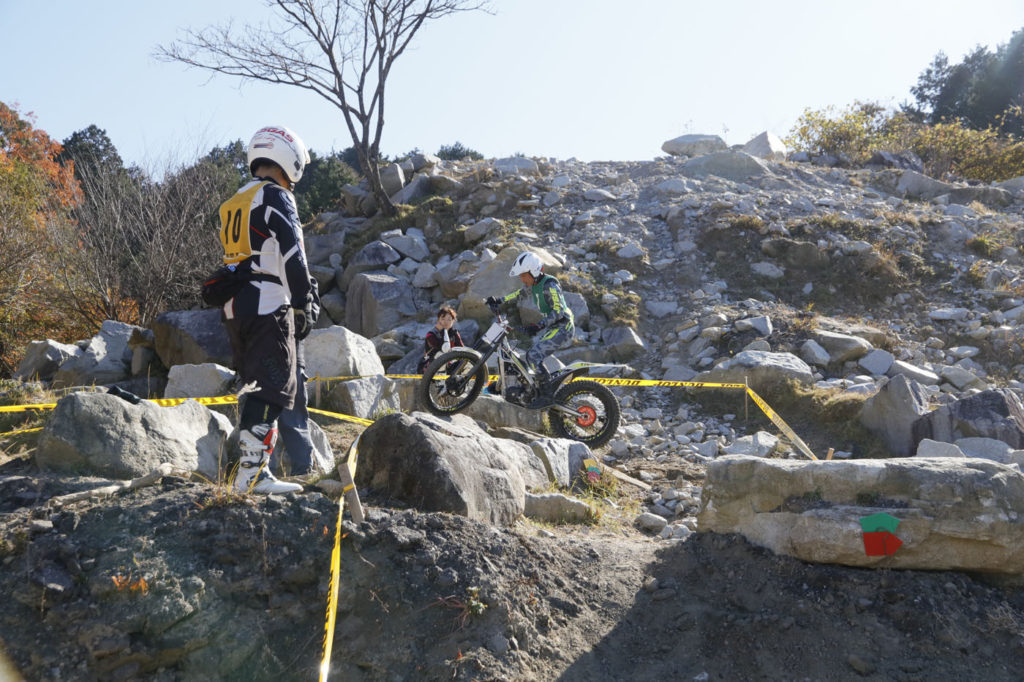 今回は、全体的にセクションの捻り具合を易しく(優しく?)してありました。全クラス共通のガレ場直登や、スロットルを開けて気持ち良く登るヒルクライムなど、捻りなしのセクションもある中で、ぴりりと薬味が効いているところが2つ3つあり、それが勝負どころとなりました。