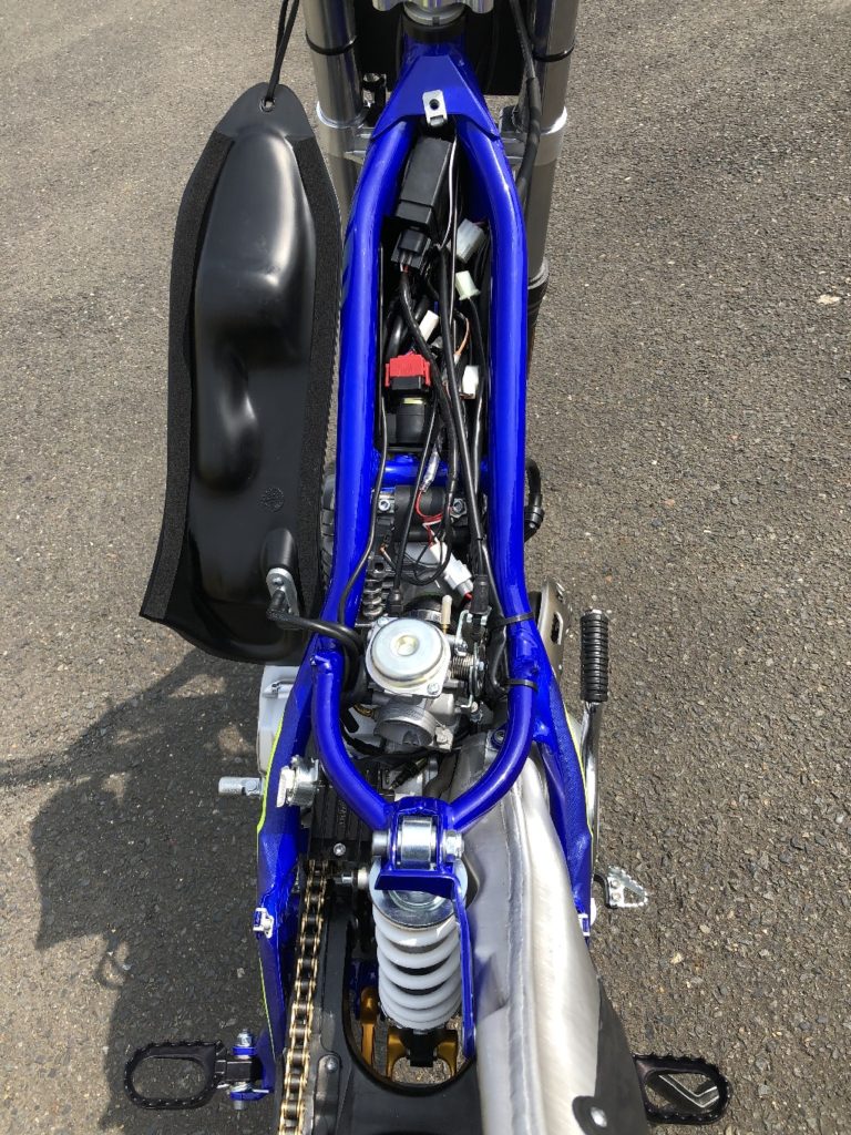 トライアルライドへの通過儀礼として避けて通れなかった難関のキック始動を、セルスターターになったことで、老若男女誰でも簡単に始動できる。また、負圧キャブレターは急激なスロットルの開閉に対しても穏やかに反応するので、初心者に扱いやすいレスポンスが期待できるだろう。