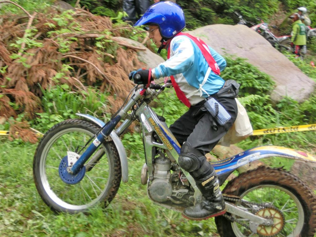 全日本トライアル選手権の九州大会が大分県で開催された同日、新潟県阿賀野市の大日が原でマスターズトライアルが開催されました。この会場は、以前マスターズじゃないMFJ全日本トライアルも開催されたことがある、緑深い山と清流が流れる美しいところです。季節が良くなると地元の人が山菜採りに入って来たり、渓流釣りの人もやって来ます。また、近隣には五頭温泉郷というひなびた温泉街もあり、美味しい者も食べられる店もあります。そういうイイ所を巡りながら旅行も兼ねての参戦もまた、良いもんです。