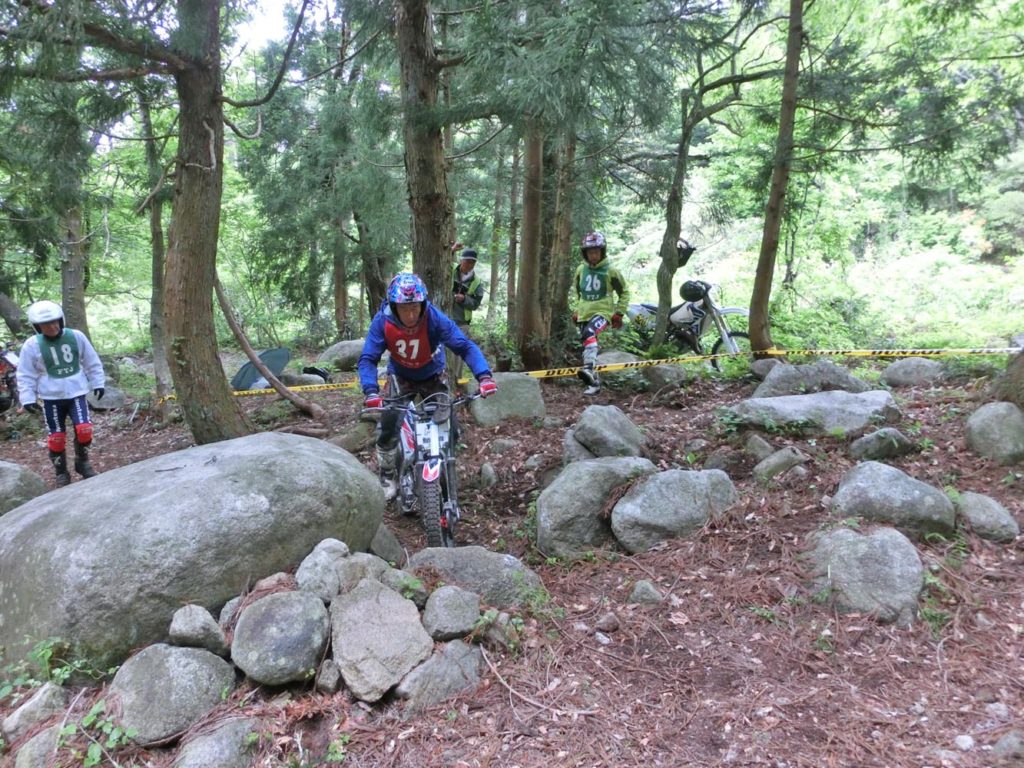 さて、次戦第3戦は7月29日の九州大会です。会場はMFJ全日本と同じ、大分県の玖珠トライアルヒルズです。林道を使ってツートラ風移動コースが用意される予定ということで話が進んでいます。こちらも、温泉アリ、旨いものアリですから、夏休みの旅行を兼ねて是非お越し下さい。年代別クラスの他、年齢制限がない、レベル制限もないクラスもありますよ。