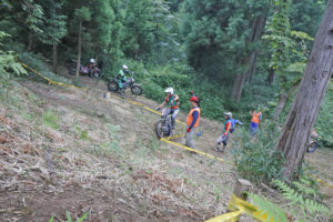 7月29日に開催された「FTJ全日本マスターズトライアル第3戦九州大会」も、暑い中での開催を覚悟していました。とは言え、ここ玖珠トライアルヒルズは、標高が大体700mほど。周囲にはたくさんの温泉もある、夏のトライアルには極楽地なのです。ただ一つ、問題があるとすれば、雨の影響。そう、雨が降ると地面がとてつもなく滑るのです。