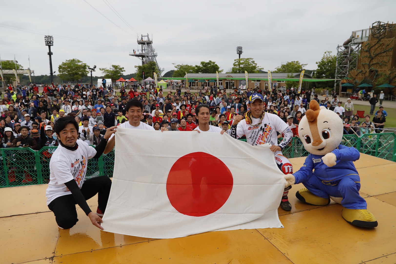 その後、本大会が黒山健一選手の「世界選手権200戦出場大会」だったということで、FIM役員のテリー・ミショーさんから記念の楯が贈られました。